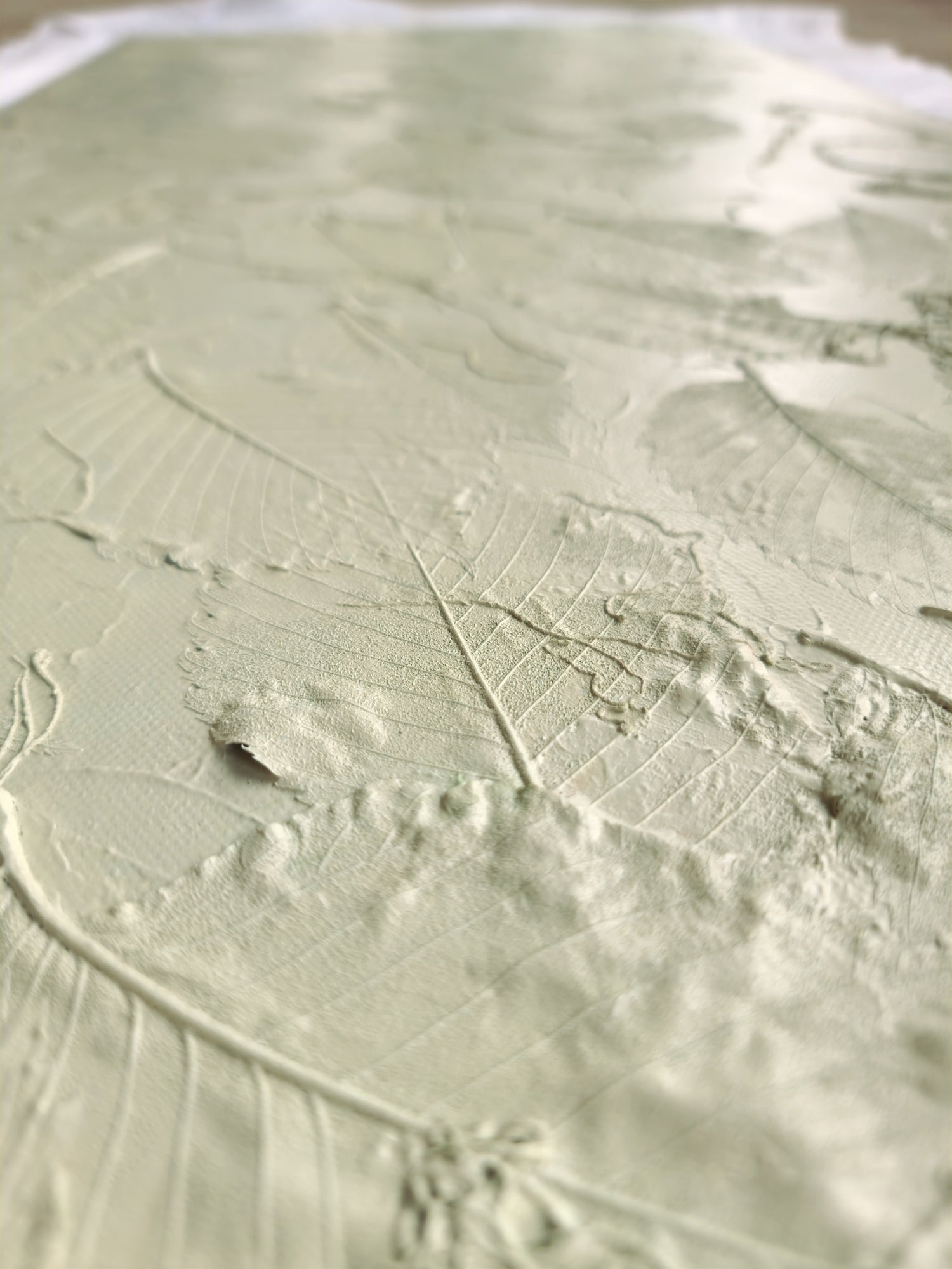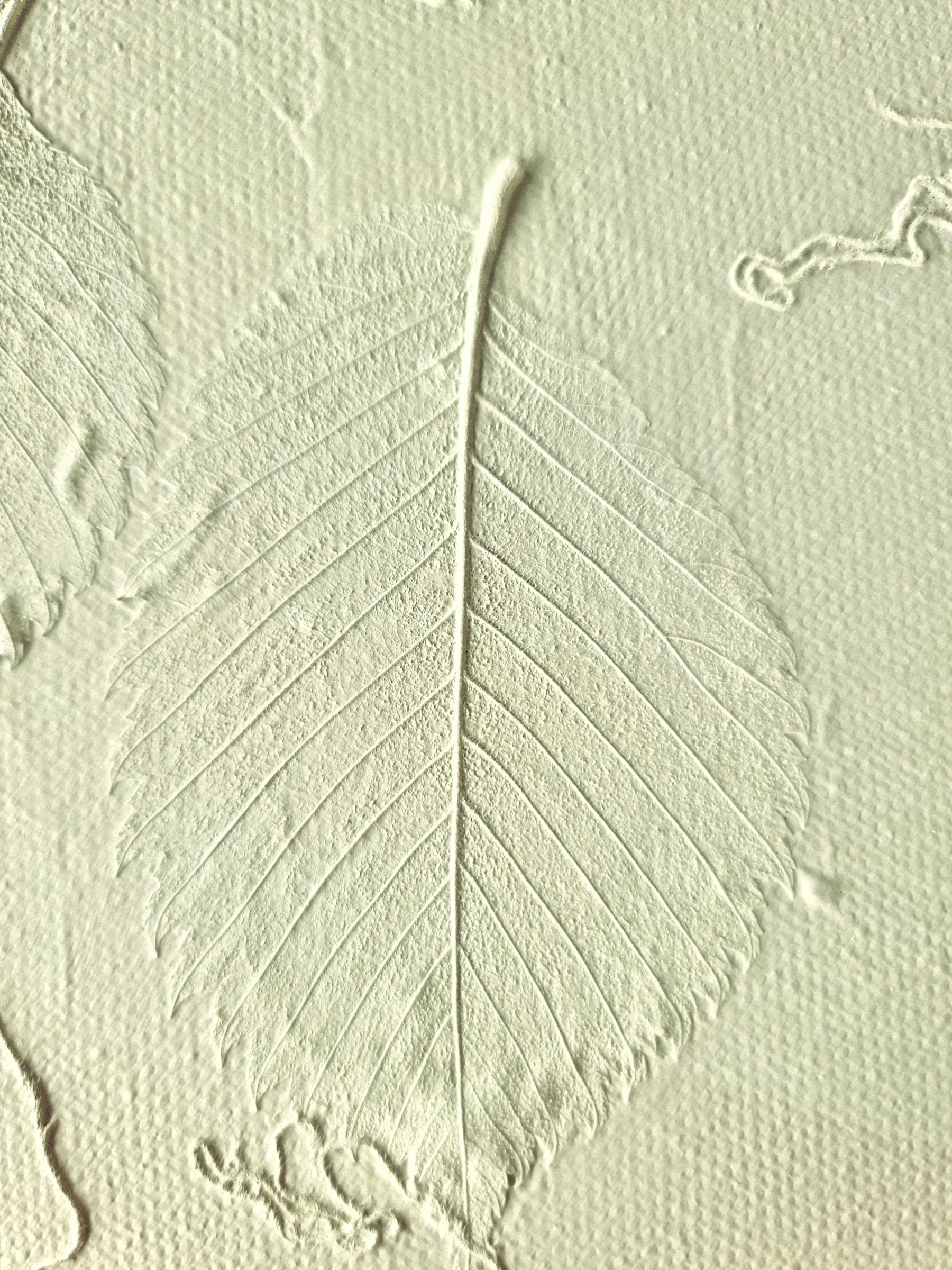 Akrils /sausas vīksnas lapas, neapstrādāta zīda diegi / audekls uz apakšrāmja.