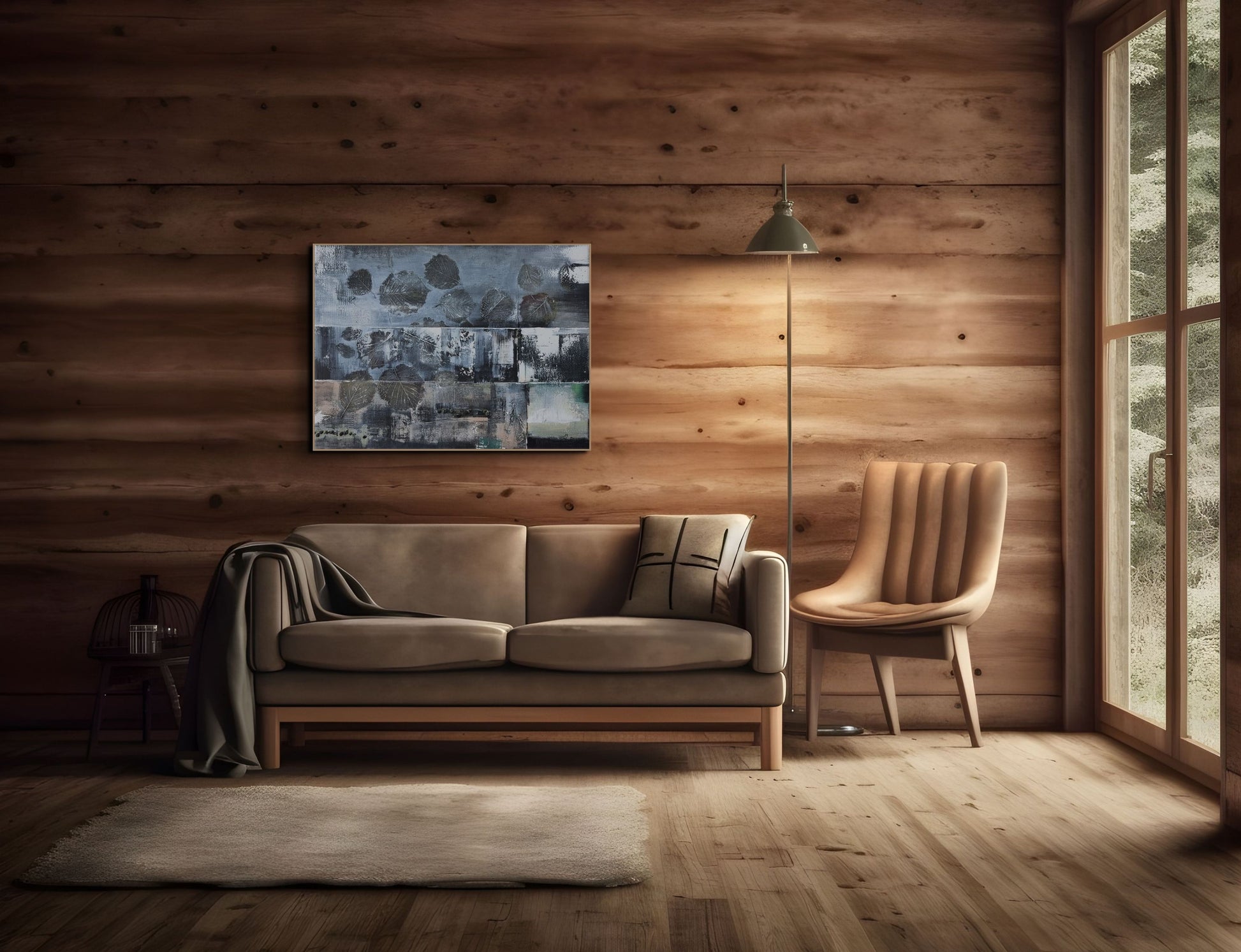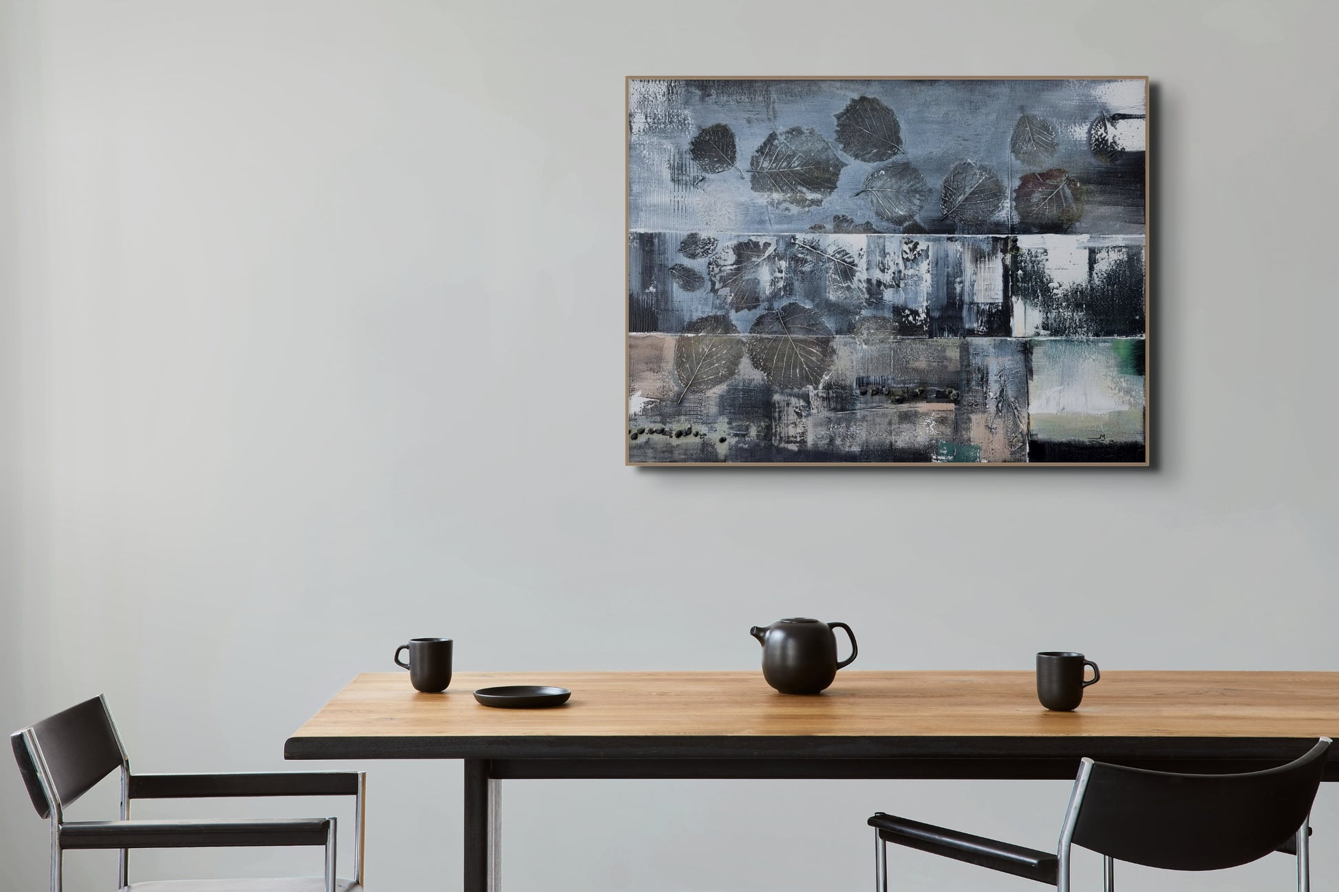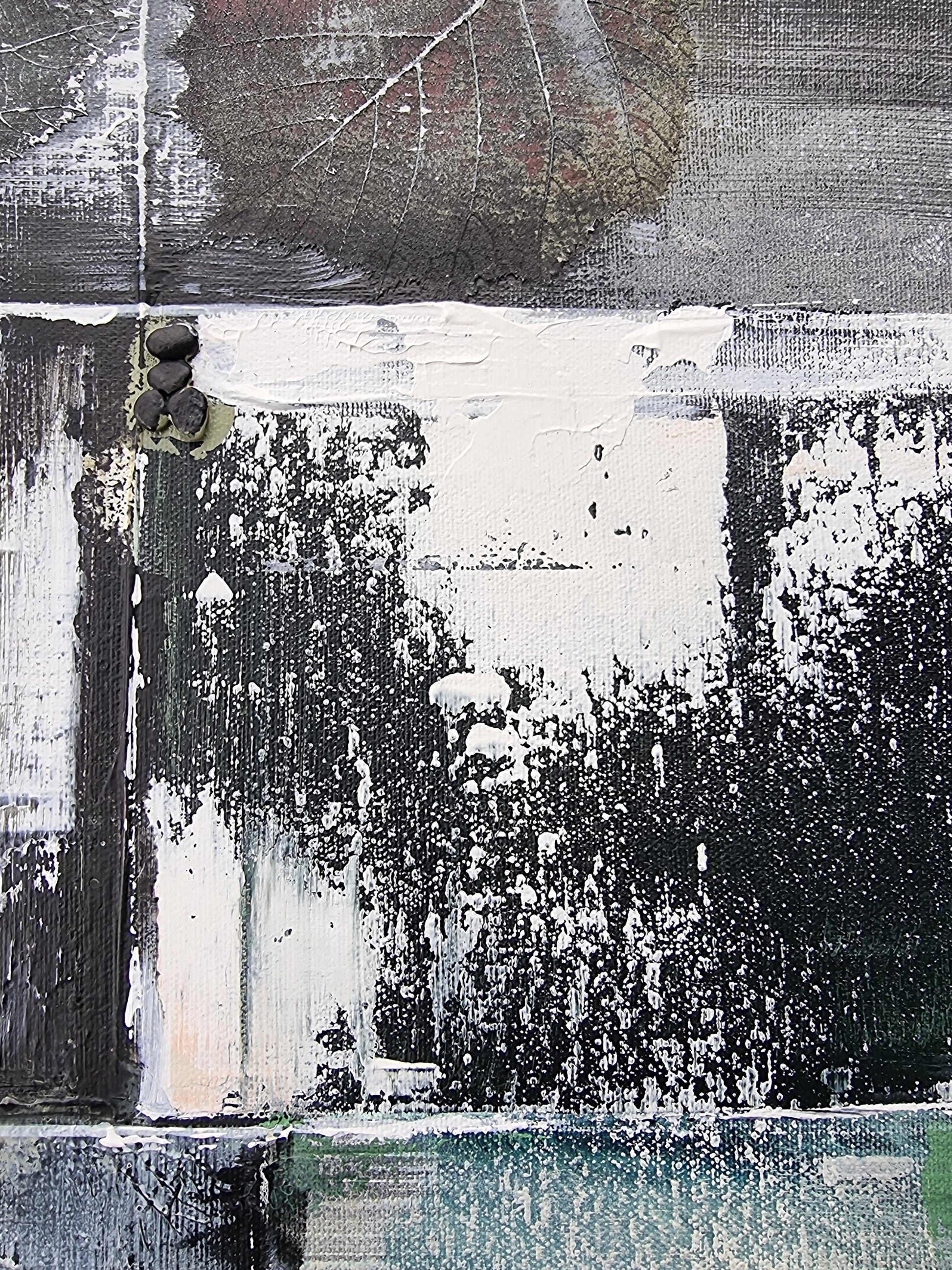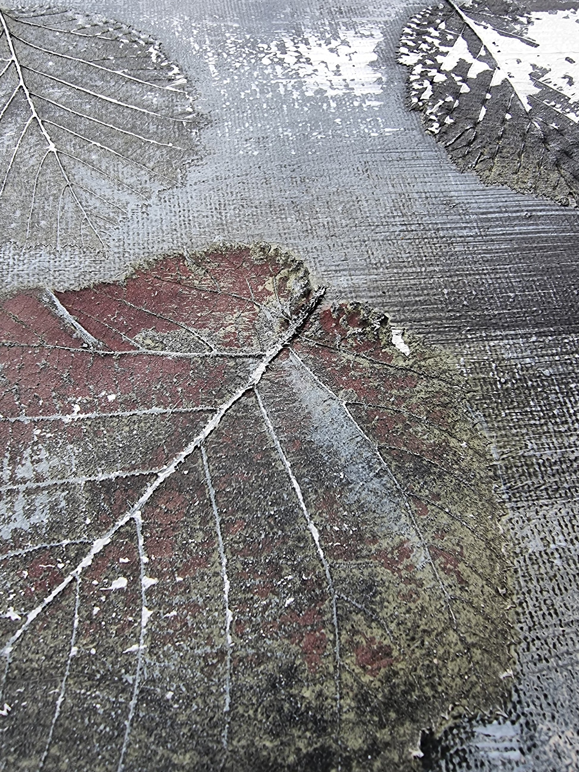 Akrils /sausas lapas, akmeņi / audekls uz apakšrāmja.