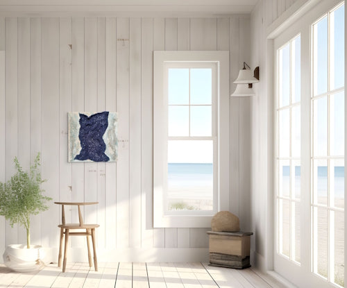 Akrils, kokvilna, jūras smiltis , audekls uz apakšrāmja.