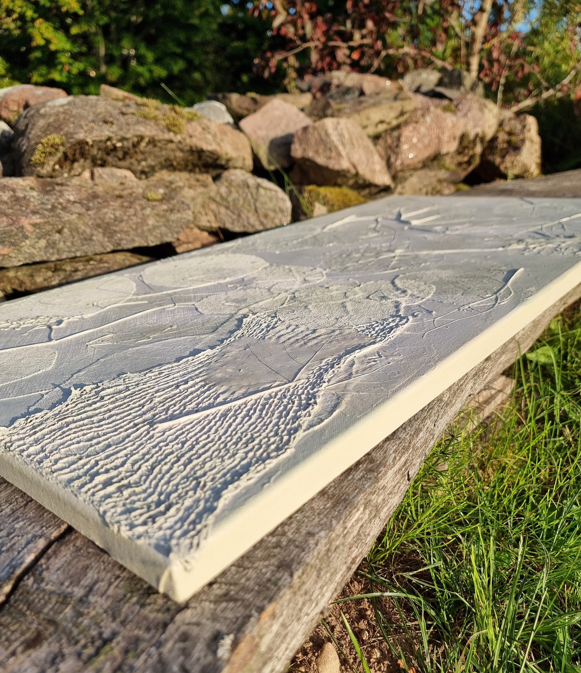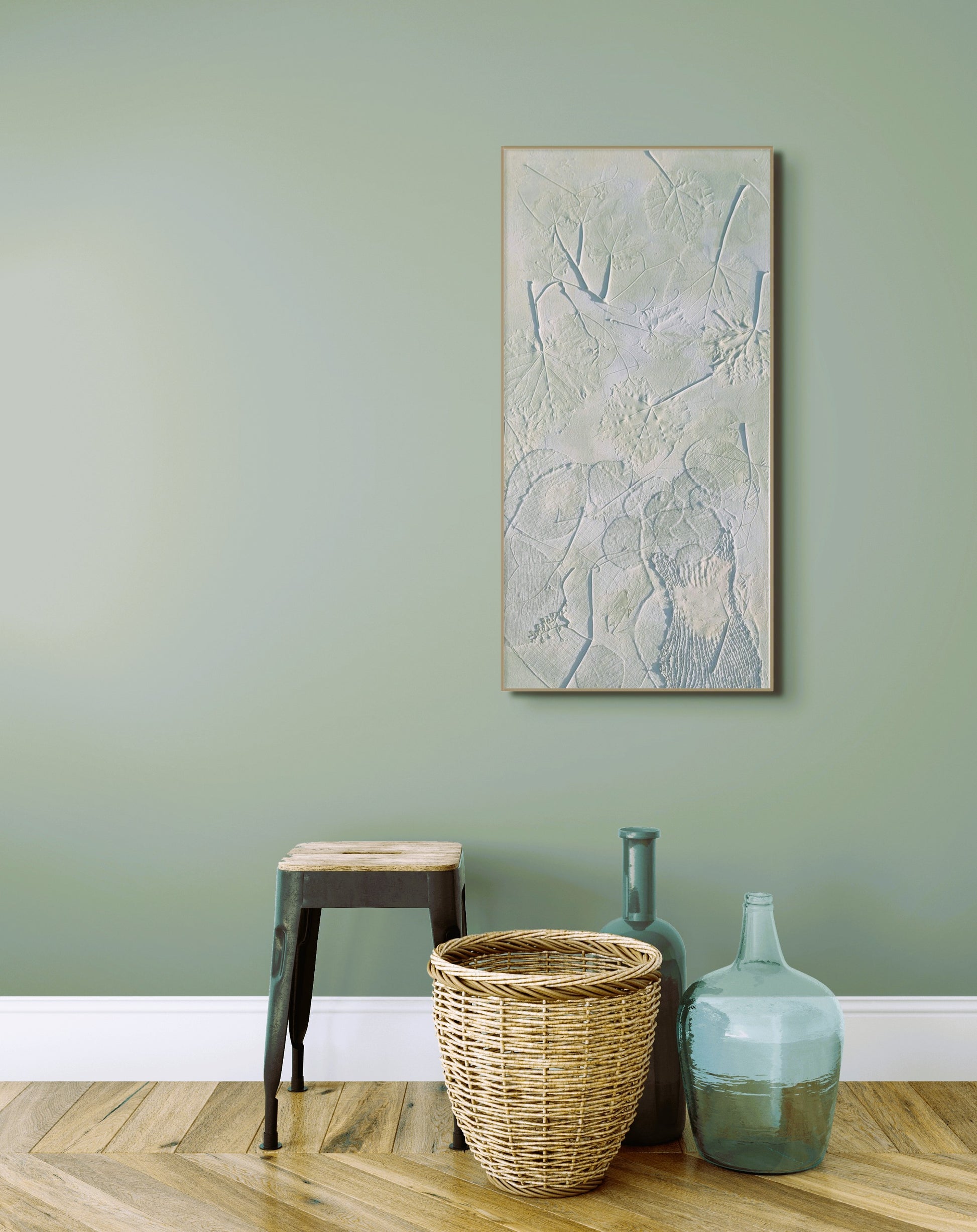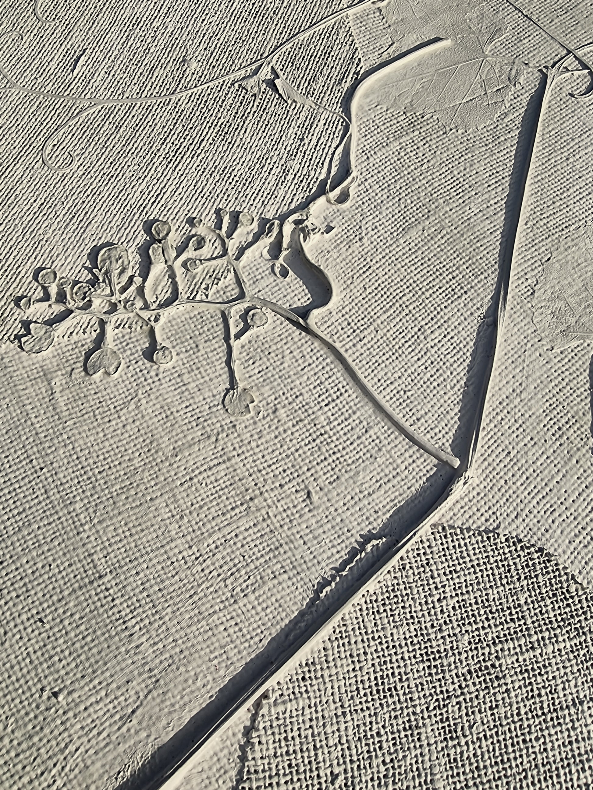 Akrils /sausas vīnogu lapas, lins / audekls uz apakšrāmja.